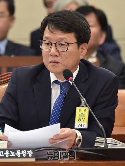 이태희 대구지방고용노동청장이 23일 오전 국회 환경노동위원회에서 열린 서울지방고용노동 등의 국정감사에 의원들의 질문을 듣고 있다.