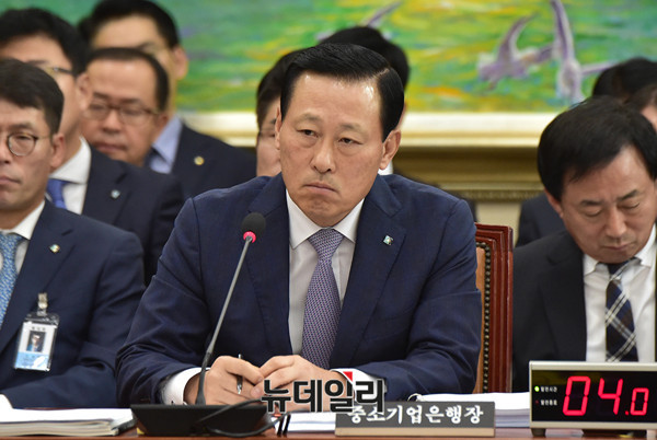 김도진 중소기업은행장이 23일 오전 국회 정무위원회의에서 열린 한국산업은행, 중소기업은행 등에 대한 국정감사에서 의원들의 질문에 답하고 있다.