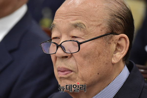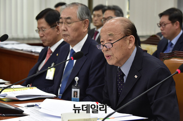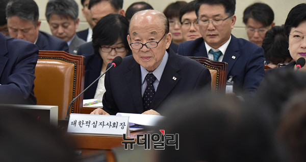박경서 대한적십자사 회장이 23일 오전 국회 보건복지위원회에서 열린 국정감사에 출석해 의원들의 질문에 답하고 있다.