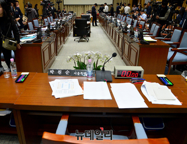 이날 정용기 자유한국당 의원은 의사진행 발언에서 "서울시에 국감 자료를 요청했다가 박원순 시장 측 인사로부터 협박을 받았다"고 주장했다.이어 여야가 자료제출 문제로 공방을 벌이다 정회됐다.