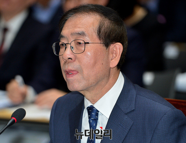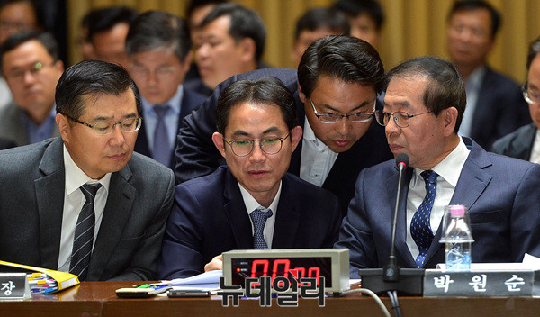 박원순 서울시장이 25일 오전 서울시청에서 열린 국회 국토교통위원회 서울시 국정감사에서 질문에 답하고 있다.