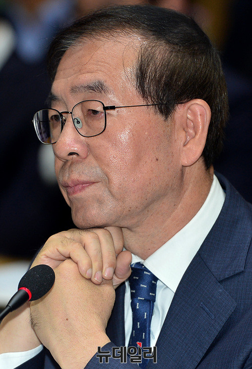 박원순 서울시장이 25일 오전 서울시청에서 열린 국회 국토교통위원회 서울시 국정감사에서 질문을듣고 있다.