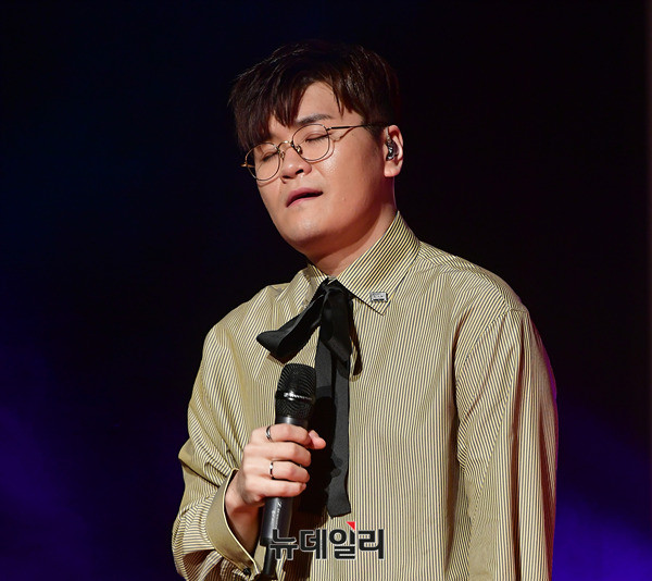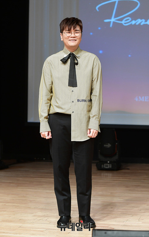 포맨 신용재가 25일 오후 서울 강남구 일지아트홀에서 열린 6번째 정규앨범 'Remember Me(리멤버 미)' 쇼케이스에서 수록곡을 선보이고 있다. 포맨은 3년 5개월 만에 타이틀곡 '눈 떠보니 이별이더라'로 컴백했다. 이번 앨범은 총 12트랙과 온라인 추가 서비스 음원 12곡을 담았다.