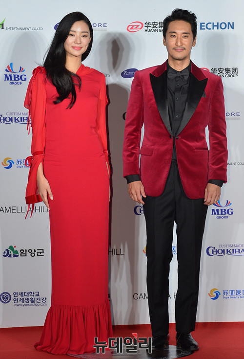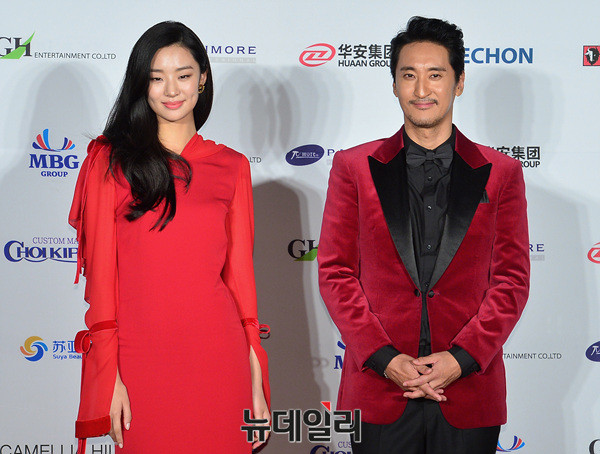 배우 스테파니 리(이정아)와 신현준이 25일 오후 서울 세종문화회관에서 열린 '제54회 대종상 영화제'에 참석해 포즈를 취하고 있다.