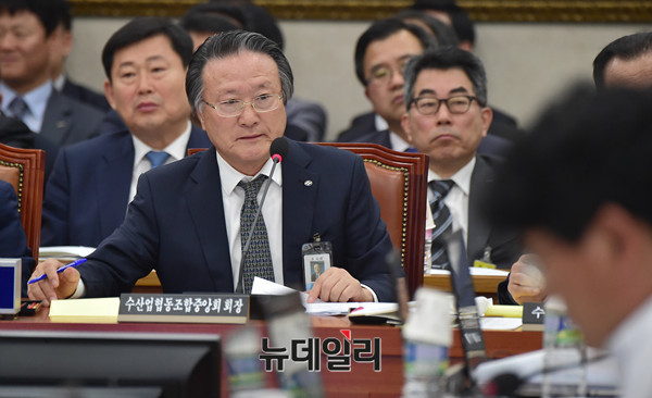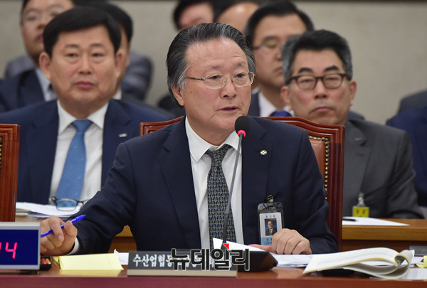 수협중앙 김임권 회장이 26일 오전 국회에서 열린 농해수위 수산업협동조합중앙회, 해양환경관리공단 등에 대한 국정감사에서 의원들의 질문에 답하고 있다.