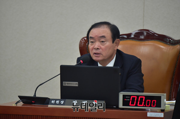 장병완 국회 산업통상자원중소벤처기업위원장이 26일 오전 국회에서 열린 중소기업진흥공단 등에 대한 국정감사에서 자유한국당 의원들의 퇴장을 놓고 모두발언을 하고 있다.
