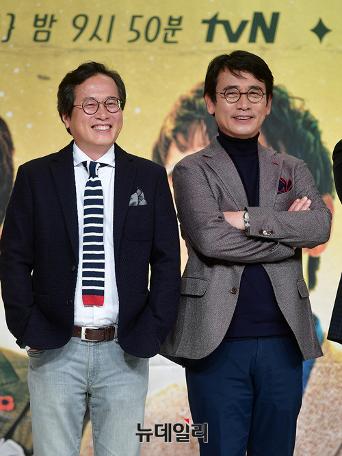 황교익, 유시민이 26일 오후 서울 영등포구 타임스퀘어 아모리스홀에서 열린 tvN '알아두면 쓸데없는 신비한 잡학사전2' 제작보고회에서 포토타임을 갖고 있다. 시즌2는 건축가 유현준, 과학분야 전문가 장동선이 합류해 낯선 주제를 또 다른 시각에서 풀어낼 예정이다. 오는 27일 첫 방송.