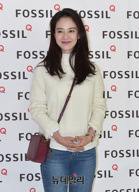배우 송지효가 27일 오후 서울 영등포구 여의도 IFC몰에서 진행된 라이프 스타일 브랜드 파슬(FOSSIL)이 Q Gen3 스마트워치 출시를 기념 팬사인회에 앞서 열린 포토월에서 포즈를 취하고 있다.