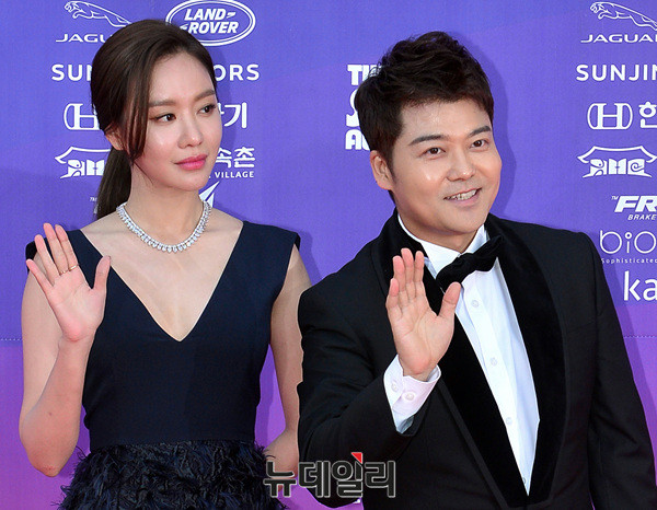 배우 김아중, 방송인 전현무가 27일 오후 서울 경희대학교 평화의전당에서 열린 '제1회 더서울어워즈(The Seoul Awards)'에 참석해 포즈를 취하고 있다.