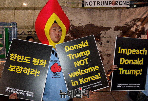 이날 집회에 참석한 시민들은 'MB구속', '트럼프 탄핵', '이석기 석방' , '사드배치반대' 등의 구호를 외쳤다.