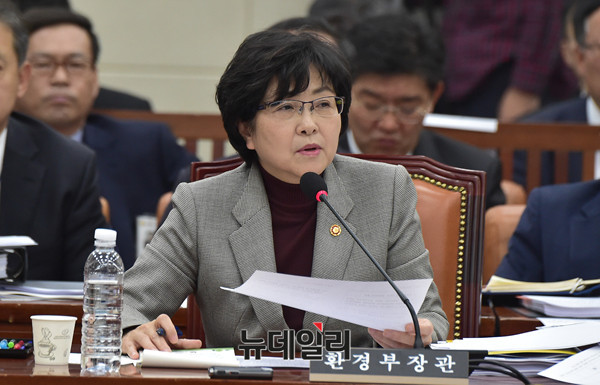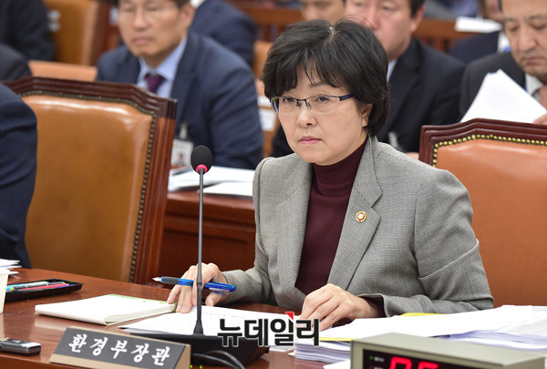 김은경 환경부 장관이 30일 오전 국회에서 열린 환경노동위원회의 환경부, 기상청 등에 대한 종합감사에 출석해 의원들의 질문에 답하고 있다.