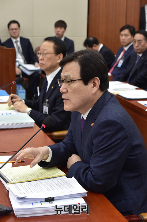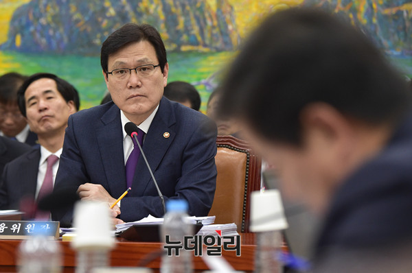 최종구 금융위원장이 30일 오전 국회에서 열린 정무위원회의 금융위원회, 금융감독원에 대한 종합감사에 출석해 의원들의 질문에 답하고 있다.