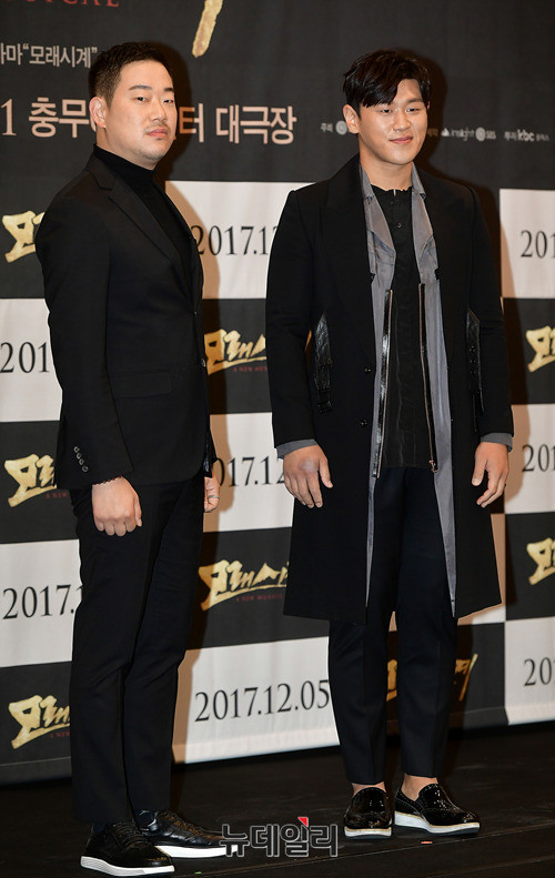 배우 박성환, 강홍석이 30일 오전 서울 중구 충무아트센터 컨벤션홀에서 열린 뮤지컬 모래시계 제작발표회에서 포토타임을 갖고 있다. 이들은 종도 역을 맡았다. 창작 뮤지컬 모래시계는 1995년 국민드라마 모래시계를 무대화한 작품으로 오는 12월 5일부터 내년 2월 11일까지 충무아트센터 대극장에서 공연된다.