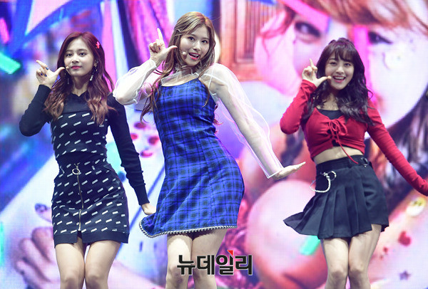 걸그룹 트와이스가 30일 오후 서울 광진구 예스24라이브홀에서 첫 정규앨범 트와이스타그램 쇼케이스를 갖고 타이틀곡 라이키 무대를 선보이고 있다. 트와이스타그램은 타이틀곡 '라이키(Likey)'을 포함해 13트랙을 담았다. 음원은 이날 오후 6시에 공개된다.