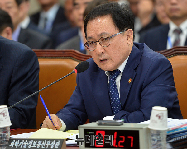 유영민 과학기술정보통신부 장관이 0일 오후 국회에서 열린 국회 과학기술정보방송통신위원회 종합국정감사에서 질문에 답하고 있다.
