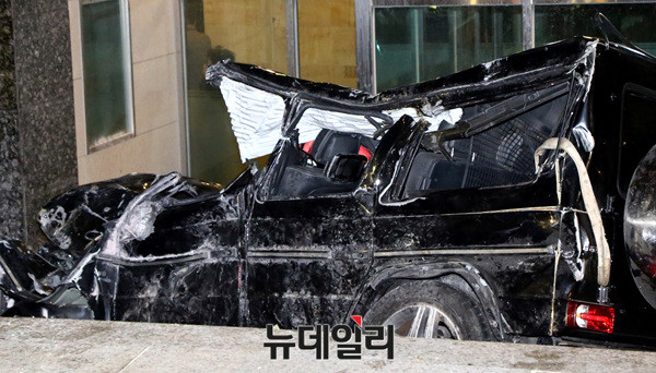 김씨의 차량은 오후 4시 27분께 봉은사역 사거리에서 경기고등학교 사거리 방향 주행 중 다른 차량과 1차 추돌 후 인도를 넘어 삼성동에 위치한 한 아파트 중문 외벽에 2차 충돌하며 전복당했다.