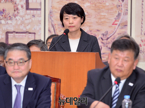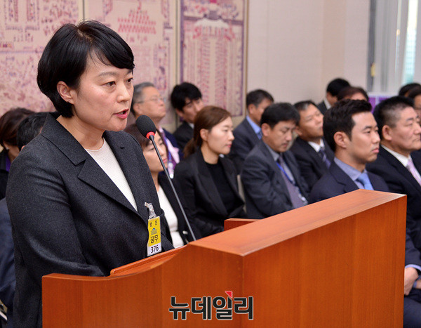 한성숙 네이버 대표가 30일 오후 국회에서 열린 국회 교육문화체육관광위원회 종합국정감사에 증인으로 출석해 의원들의 질문에 답하고 있다.