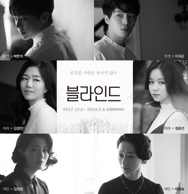 국내 첫 정식 라이선스 공연되는 연극 '블라인드'가 프로필 사진을 공개했다.'블라인드'는 시각을 잃은 후 세상과 단절된 청년 '루벤'과 몸과 마음이 상처로 가득한 여자 '마리'가 만나 마음으로 서로를 느끼며 진정한 교감을 해나가는 순백의 사랑 이야기이다.자신의 아들이 상처로 가득한 여자에게 마음을 주는 것을 원치 않는 '루벤'의 엄마 '여인'의 존재와 '루벤'에게 일어난 예상치 못한 기적은 '마리'를 불안에 휩싸이게 만들며 극적인 전개를 이끌어 나간다.공개된 프로필 사진에서 배우들은 캐릭터의 감정을 온전히 담아냈다. '루벤' 역의 박은석과 이재균은 주변을 경계하면서도 누군가를 기다리는 듯한 표정으로 어둠 속에서 유일하게 빛이 되어준 '마리'를 기다리는 모습을 완벽하게 표현했다.'마리' 김정민과 정운선은 슬픔이 어려있는 아련한 눈빛으로 상처로 가려진 자신의 진짜 모습을 알아봐준 '루벤'에게 다가서고 싶지만 미처 닿지 못하는 마음을 그려낸다.'여인' 역의 이영숙과 김정영은 아들 '루벤'에 대한 걱정과 동시에 '마리'로 인해 그에게 일어나는 변화에 대해 불안감을 느끼는 모습을 묵직한 연기력으로 연출하고 있다.연극 '블라인드'는 국내 미개봉작 임에도 불구하고 입소문을 타며 마니아층을 형성해온 동명의 네덜란드 영화를 원작으로 한 작품이다. 영화는 제 32회 토론토국제영화제를 비롯해 해외 유수 영화제에서 주목받았다.원작의 아름다운 미장센을 뛰어넘는 무대 연출과 고운 선율의 음악은 소리로 느끼고 손으로 보는 '루벤'의 감정을 무대 위에 고스란히 드러내며 오감으로 감상하는 연극을 선보일 예정이다.12월 6일 수현재씨어터에서 개막하며, 11월 9일 오후 2시 인터파크에서 프리뷰 티켓이 오픈된다. 이번에 오픈되는 프리뷰 기간 공연(12월 6~15일) 예매시에는 40% 할인 혜택이 제공된다. 문의 02-3672-0900.[사진=나인스토리]
