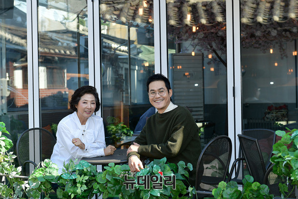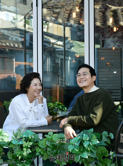 배우 고두심과 김성균이 31일 오후 서울 종로구의 한 카페에서 뉴데일리와 인터뷰에 앞서 포토타임을 갖고 있다. 영화 '채비(감독 조영준)'는 지적장애를 가진 일곱 살 같은 아들 인규(김성균 분)를 돌봐야 하는 엄마 애순(고두심 분)이 아들이 홀로 살아갈 수 있게, 특별한 체크리스트를 채워가는 과정을 그린 드라마다. 오는 11월 9일 개봉 예정.