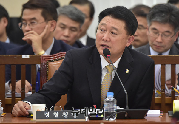 이철성 경찰청장이 31일 오전 국회에서 열린 안전행정위원회의 행정안전부 등의 종합감사에 출석해 의원들의 질의에 답하고 있다.