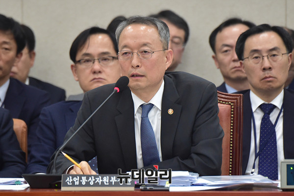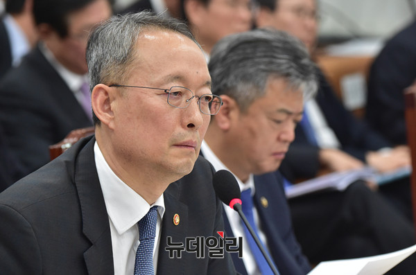 백운규 산업통상자원부 장관이 31일 국회에서 열린 산업통상자원중소벤처기업위원회의 산업통상자원부 등에 대한 종합감사에서 의원들의 질문에 답하고 있다.
