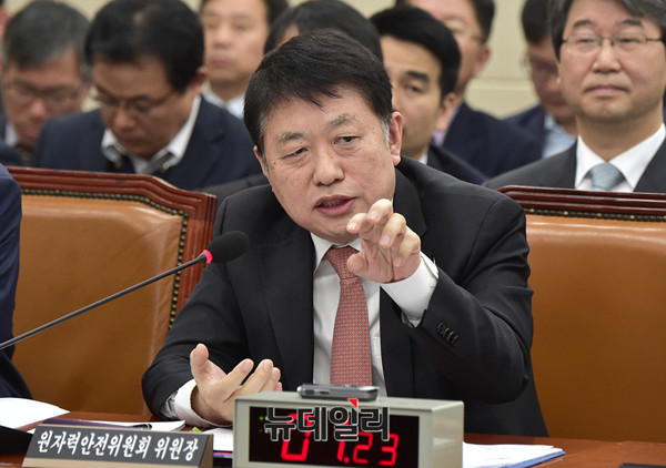 김용환 원자력안전위원장이 31일 오전 국회에서 열린 과학기술정보방송통신위원회 원자력안전위원회 등에 대한 종합감사에 출석해 질문에 답하고 있다.