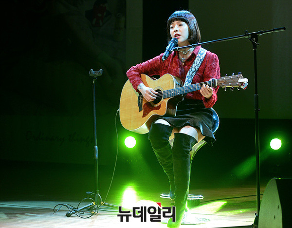 가수 주니엘(JUNIEL)이 31일 오후 서울 강남구 일지아트홀에서 열린 네 번째 미니앨범 '오디너리 띵스(Ordinary things)' 발매 기념 쇼케이스에 참석해 신곡 무대를 선보이고 있다.