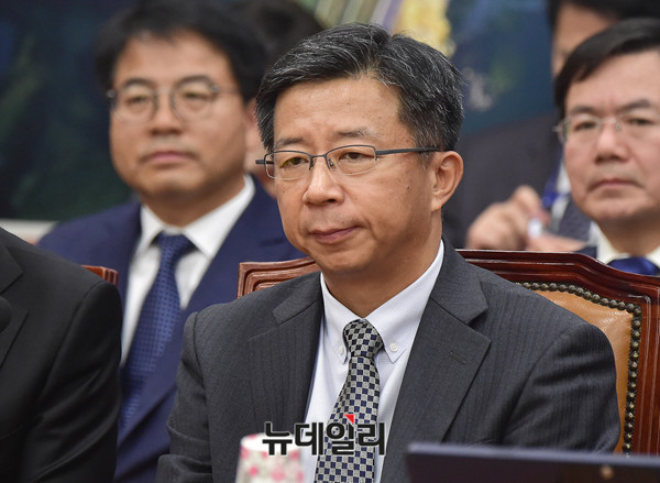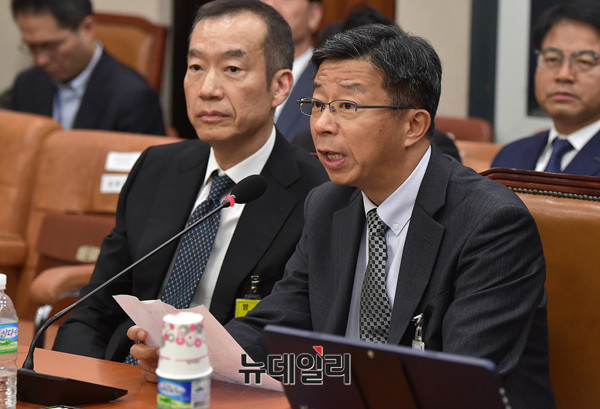 임병용 GS건설 사장이 31일 오후 국회 국토교통위원회에서 열린 종합감사 증인으로 출석해 의원들의 질문에 답을 하고 있다.