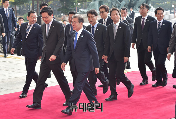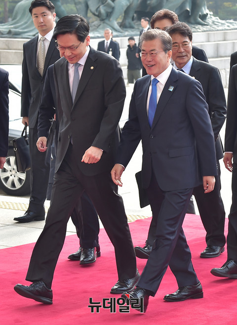 문재인 대통령이 1일 오전 2018년도 예산안 편성 관련 시정연설을 하기 위해 국회로 입장히고 있다.
