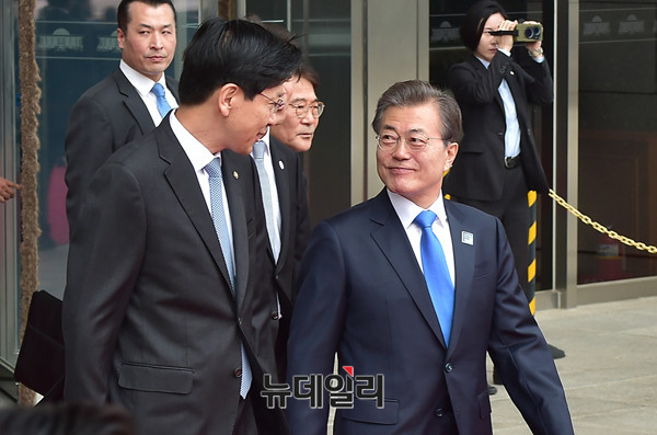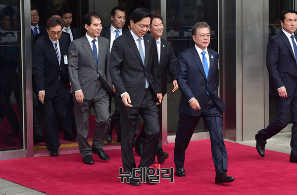 문재인 대통령이 1일 오전 2018년도 예산안 편성 관련 시정연설을 마치고 국회를 떠나고 있다.