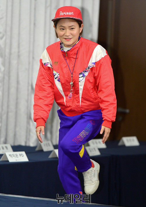 개그우먼 김신영이 1일 오후 서울 마포구 스탠포드호텔에서 열린 제작발표회에 참석해포즈를 취하고 있다.