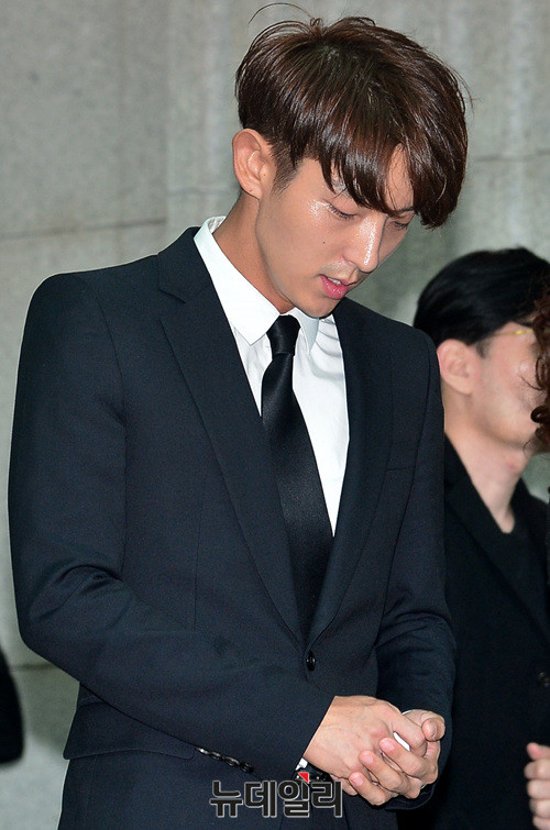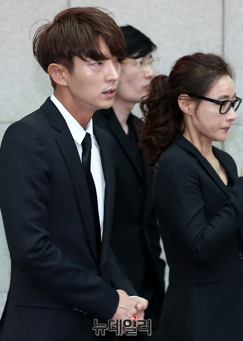 배우 이준기가 2일 오전 서울 송파구 아산병원 장례식장에서 진행된 故 김주혁의 발인식에서 고인을 베웅하고 있다. 이날 발인식에는 고인의 가족과 동료 배우들이 참석했다.