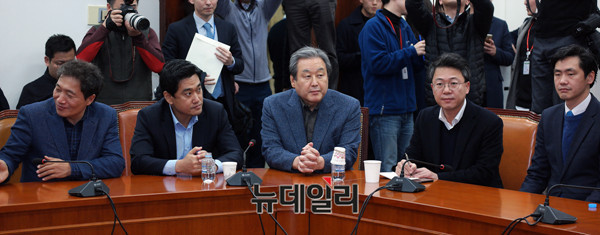 바른정당 김무성 의원이 5일 오후 국회에서 열린 의원총회에 참석해 자리에 앉아 있다. 이날 의총은 전당대회 연기와 자유한국당과의 통합 문제 등에 대해 논의할 예정이다.