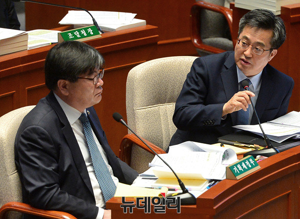 김동연 부총리 겸 기획재정부 장관이 6일 오후 국회에서 열린 2018년도 예산안 논의를 위한 예산결산특별위원회 전체회의에 참석해 질문에 답하고 있다.