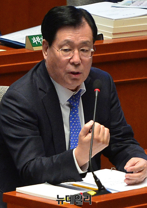 황찬현 감사원장이 6일 오후 국회에서 열린 2018년도 예산안 논의를 위한 예산결산특별위원회 전체회의에 참석해 질문에 답하고 있다.
