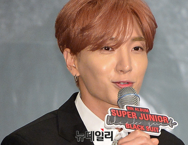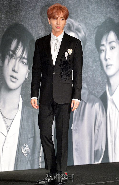 그룹 슈퍼주니어(희철, 신동, 동해, 예성, 은혁, 이특) 이특이 6일 오전 그랜드인터컨티넨탈 서울 파르나스에서 열린 정규 8집 '플레이(PLAY)' 발매 기념 기자간 담회에 참석해 포즈를 취하고 있다.