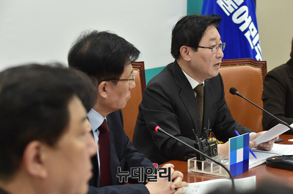 박범계 더불어민주당 적폐청산위원회 위원장이 7일 오전 국회에서 열린 적폐청산위원회 전체회의에서 모두발언하고 있다.