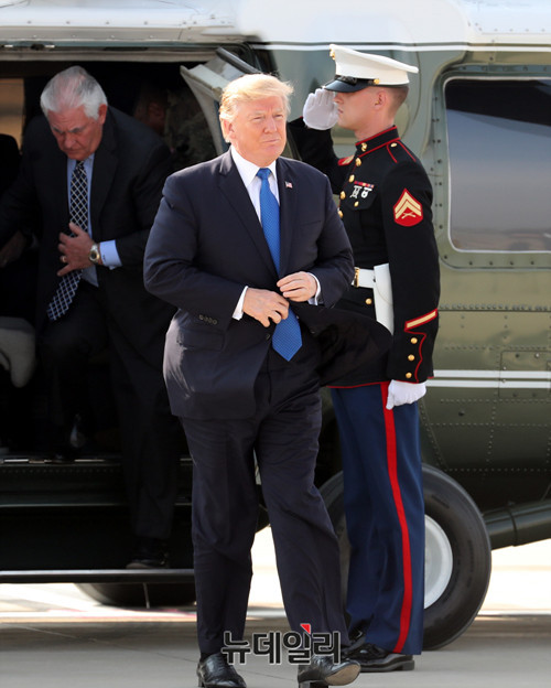 [포토] 캠프 험프리에 도착한 도널드 트럼프 미국 대통령