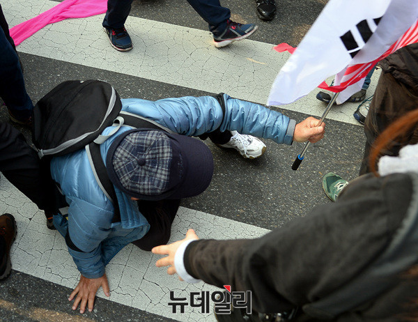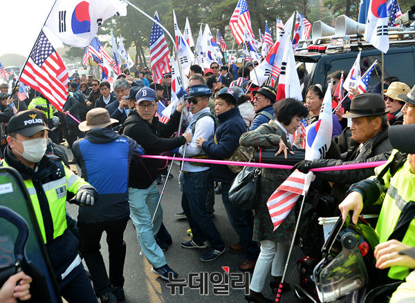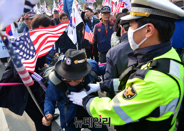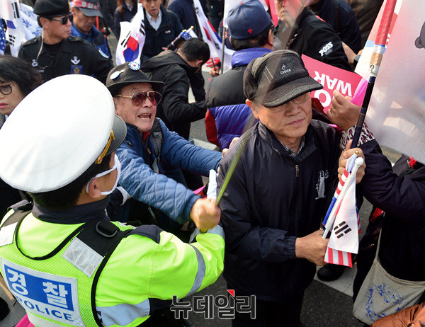 [포토] 트럼프 연설 앞둔 국회, 찬반 집회 충돌