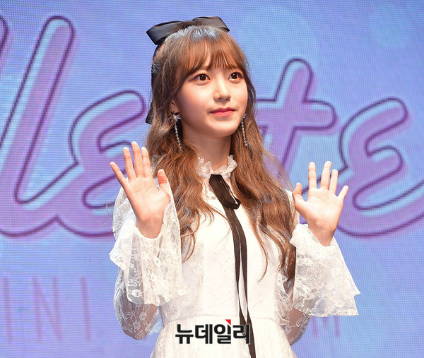 프로듀스101 출신 김소희가 8일 오후 서울 서초구 흰물결아트센터에서 열린 첫 번째 미니앨범 'the Fillette(더 피예트)' 쇼케이스에서 포토타임을 갖고 있다. 타이틀곡 '소복소복'을 포함해 총 6트랙을 담았다.