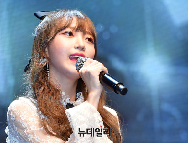프로듀스101 출신 김소희가 8일 오후 서울 서초구 흰물결아트센터에서 열린 첫 번째 미니앨범 'the Fillette(더 피예트)' 쇼케이스에서 타이틀곡 소복소복을 열창하고 있다. 인사말을 하고 있다. 타이틀곡 '소복소복'을 포함해 총 6트랙을 담았다.