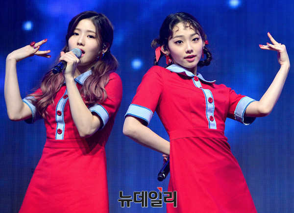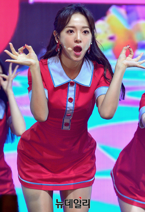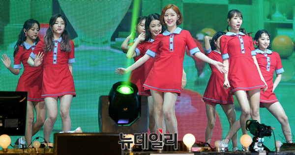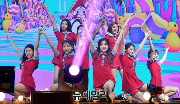 그룹 구구단(Gugudan : 하나, 미미, 나영, 해빈, 세정, 샐리, 미나, 혜연)이 8일 오후 서울 광진구 예스24라이브홀에서 열린 첫 번째 싱글 앨범 '초코코 팩토리(Chococo Factory)' 발매기념 쇼케이스에 참석해 신곡 무대를 선보이고 있다. 멤버 소이는 어깨부상으로 이번 앨범에 불참했다.