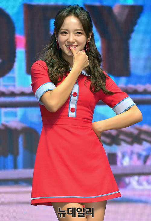 그룹 구구단(Gugudan : 하나, 미미, 나영, 해빈, 세정, 샐리, 미나, 혜연) 세정이 8일 오후 서울 광진구 예스24라이브홀에서 열린 첫 번째 싱글 앨범 '초코코 팩토리(Chococo Factory)' 발매기념 쇼케이스에 참석해 포토타임을 갖고 있다. 멤버 소이는 어깨부상으로 이번 앨범에 불참했다.