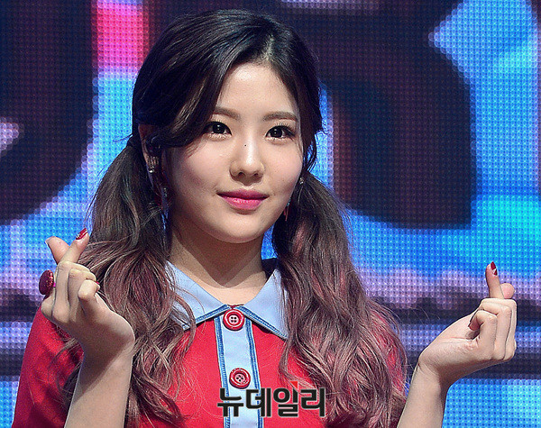 그룹 구구단(Gugudan : 하나, 미미, 나영, 해빈, 세정, 샐리, 미나, 혜연) 혜연이 8일 오후 서울 광진구 예스24라이브홀에서 열린 첫 번째 싱글 앨범 '초코코 팩토리(Chococo Factory)' 발매기념 쇼케이스에 참석해 포토타임을 갖고 있다. 멤버 소이는 어깨부상으로 이번 앨범에 불참했다.