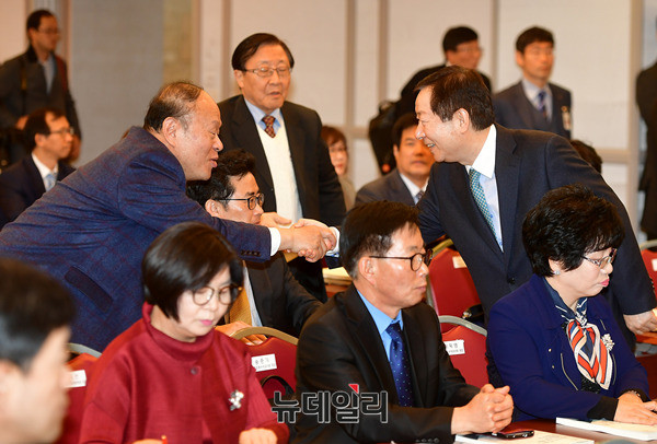 성낙인 서울대학교 총장이 9일 오후 서울 서초구 한국교총 다산홀에서 열린 토론회에 입장하고 있다. 한국교총 창립 70주년을 기념해 주최한 이날 토론회는 '한국교총 70년의 성찰과 미래 대한민국 교육 30년의 길'을 주제로 성 전 총장이 기조강연을 맡았다.