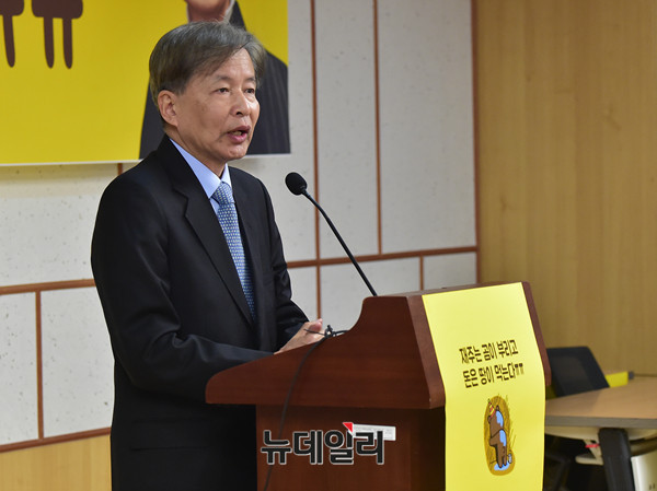이정우 전 청와대정책기획위원장이 10일 오전 국회 의원회관에서 '헨리 조지와 지대개혁 토론회'에 참석해 축사를 하고 있다.