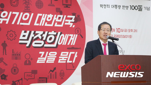 홍 대표는 이날 대구 엑스코에서 열린 '박정희 대통령 탄생 100돌 기념- 위기의 대한민국 박정희에게 길을 묻다' 토크콘서트에 참석, 축사 도중 박 전 대통령 출당에 항의하는 참가자들을 향해 이같이 말했다.