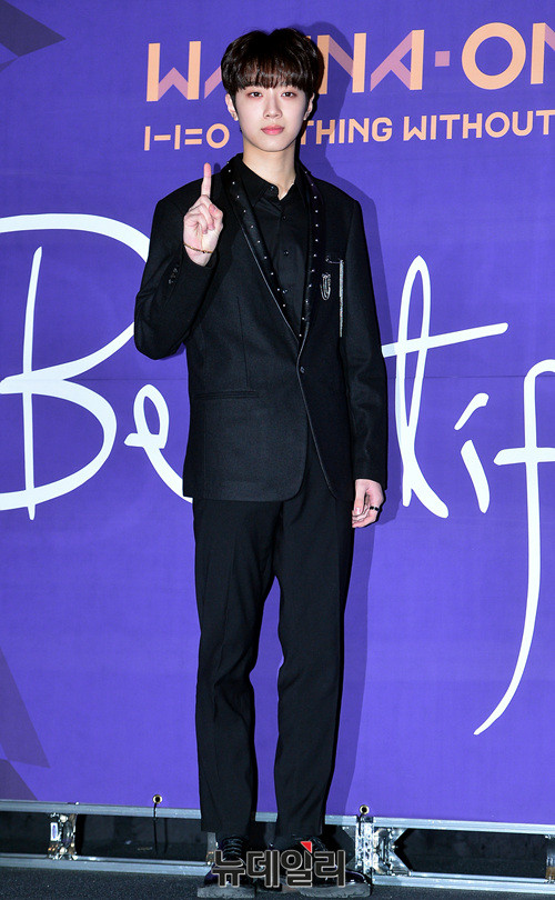 그룹 워너원(Wanna One : 강다니엘, 박지훈, 이대휘, 김재환, 옹성우, 박우진, 라이관린, 윤지성, 황민현, 배진영, 하성운) 라이관린이 13일 오후 서울 용산CGV에서 열린 두 번째 앨범 '1-1=0(Nothing Without You)' 발매 기념 언론시사회에 참석해 포즈를 취하고 있다.