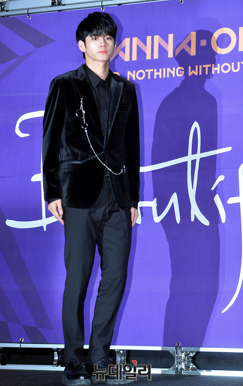 그룹 워너원(Wanna One : 강다니엘, 박지훈, 이대휘, 김재환, 옹성우, 박우진, 라이관린, 윤지성, 황민현, 배진영, 하성운) 옹성우가 13일 오후 서울 용산CGV에서 열린 두 번째 앨범 '1-1=0(Nothing Without You)' 발매 기념 언론시사회에 참석해 포즈를 취하고 있다.