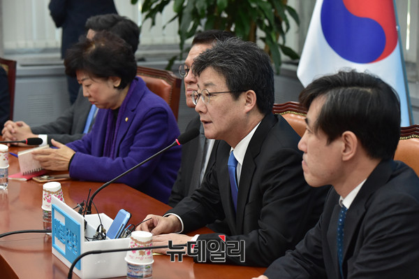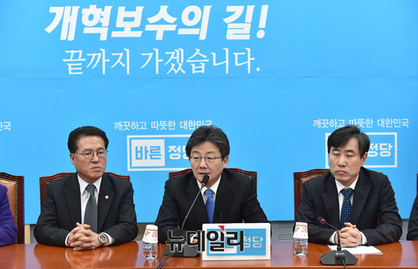 유승민 신임 바른정당 대표가 14일 오전 국회에서 열린 최고위원회의에 참석해 모두발언을 하고 있다.